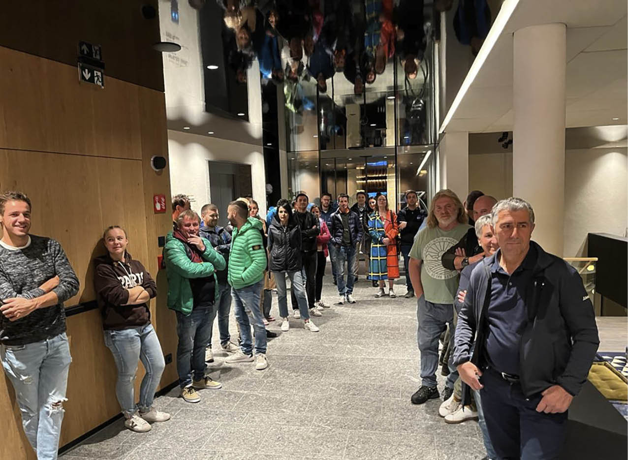 Das Highlight dieses Bereichs sind die offene Küche und der Jesper Grill. Dieser ist jeden Abend in Funktion, um den Gästen Köstlichkeiten vom Jesper-Holzkohlegrill zu servieren. Besichtigt hat die Gruppe auch die Speiseräume und den Weinkeller. Dort ist der Massivholztisch der absolute Blickfang. Dieser wurde aus einem Kastanienbaum geschnitten, der auf dem Grundstück stand, beim Bau des SANTRE verletzt wurde und daher gefällt werden musste. Die letzte Station der Tour war die wunderschöne Bar.