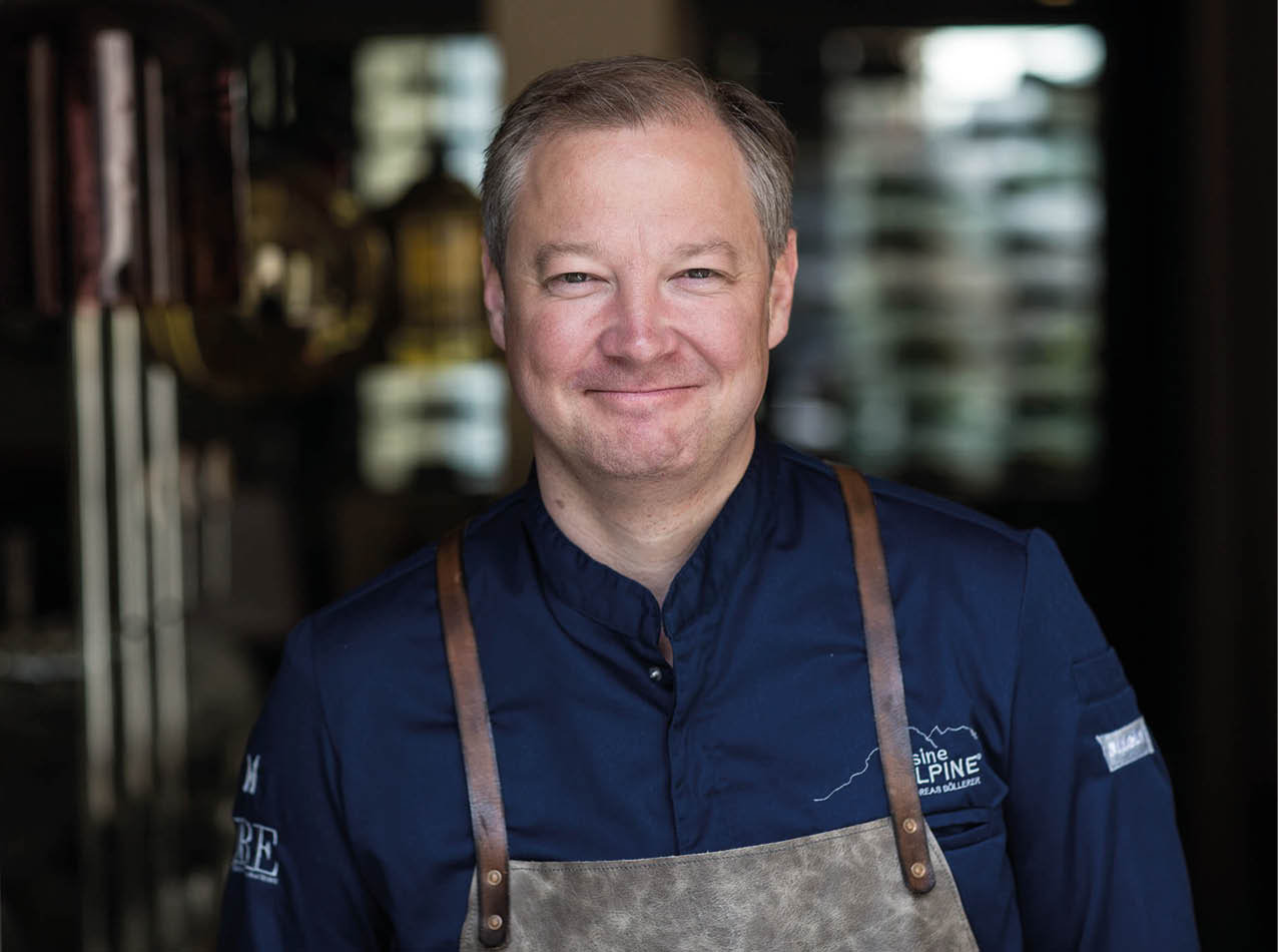 Ich kam aus einer Drei-Sterne-Küche mit Gänseleber und Kaviar, als ich in den elterlichen Betrieb zurückging. Ich begann auch dort mit der typischen französischen Küche, die sehr gut ankam. Aber irgendwann war mir das einfach zu wenig. Der Auslöser für den Wandel in der Küche war schließlich eine Lieferung von Steinbutt, die wirklich sehr schlecht war. Zur selben Zeit hatte ich einen jungen Fischzüchter kennengelernt, der in einem Naturschutzgebiet bei uns tolle Saiblinge züchtet. Damit habe ich den Steinbutt ersetzt und daraufhin alle Meeresfische von der Karte genommen. Kollegen haben mich damals gewarnt, ich würde die Hauben verlieren. Zum Glück bin ich dabei geblieben, habe die Auszeichnungen behalten und nach und nach alle Produkte auf regionale Zutaten umgestellt. 2010 ist schließlich die Marke „Alpine Cuisine“ entstanden.