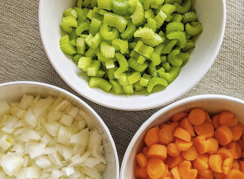 Interessant: Was nie in ein klassisches Mirepoix gehört, ist Stangensellerie